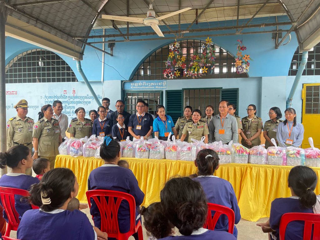 Correctional Center 2 in the morning of May 9, 2024, the delegation of the General Secretariat of CNCC Led by Excellency Sambath Sokunthea, Deputy Secretary General, High Representative of Excellency Kim Sovandy, Secretary General of the General Secretariat of the CNCC In collaboration with the Tzu Chi Charity Foundation-Cambodia and the Mlup Russey Organization, we visited children living with mothers in Correctional Center 2 and brought some charitable gifts to distribute to children living with mothers and pregnant women in correctional centers 2 also include: 100 cans of vitamins; 6 boxes of cakes (5 kg); 10 boxes of tampons (600 small packs); 300 pairs of diapers; milk powder; 5 cases of infant milk (30 cans, 800g); 100 proverbs; and 3 wheelchairs.